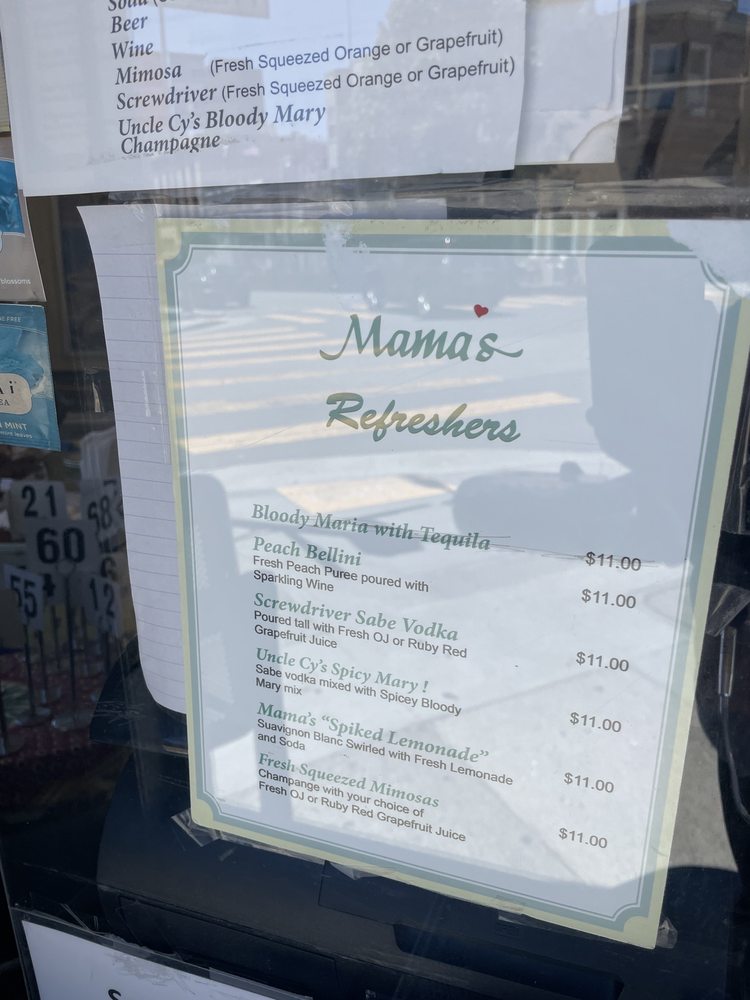 Mama's elegant classic. Apple juice, peach puree, & champagne. Must be 21 to purchase.